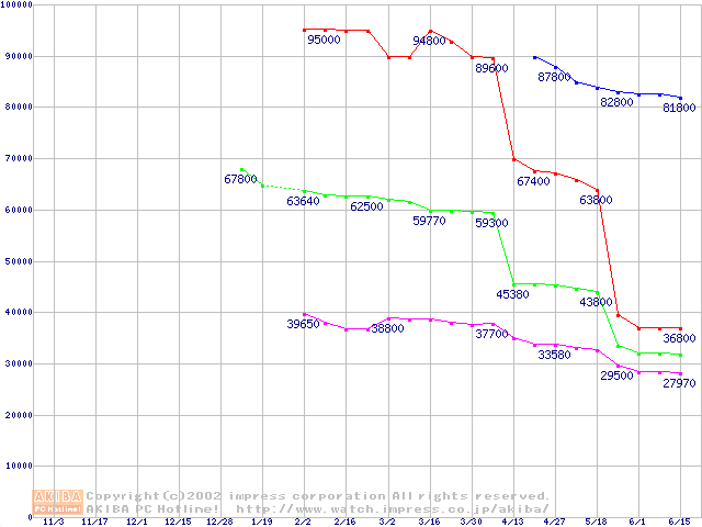 | [↑前グラフ]: | Socket 603 (micro-PGA,L3 512KB,Hyper-Threading)の最安値推移 |