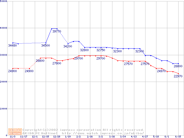 | [↑前グラフ]: | Socket 603 (micro-PGA,L2 512KB,Hyper-Threading,Prestonia)の最安値推移 |