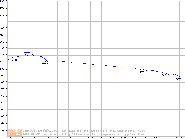| [↓次グラフ]: | U6 (5400rpm,UltraATA/100 2MB 40GB/Platter,流体軸受)の最安値推移 |