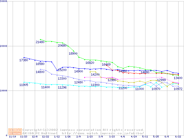 | [↓次グラフ]: | 2.5インチHDD主要製品(最安値1万5千円~2万円未満)の最安値推移 |