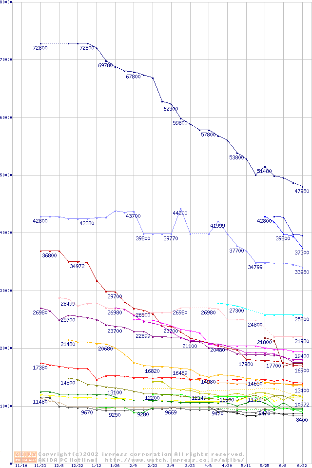 2.5インチHDD 60GB~80GB未満(12.5mm厚)の最安値推移