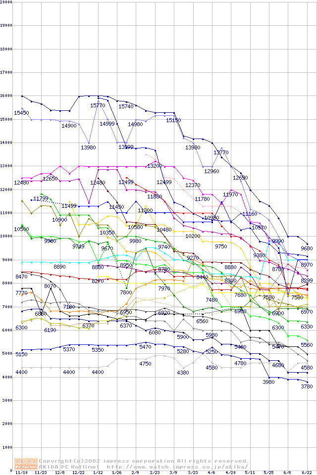 CPU主要製品(最安値1万円~2万円未満)の最安値推移