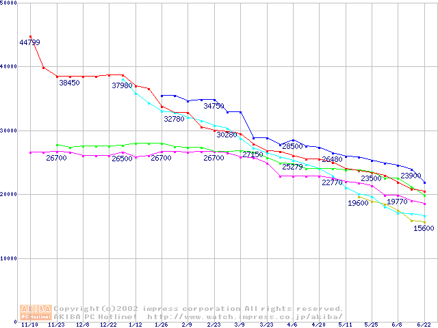 メモリ主要製品の最安値推移