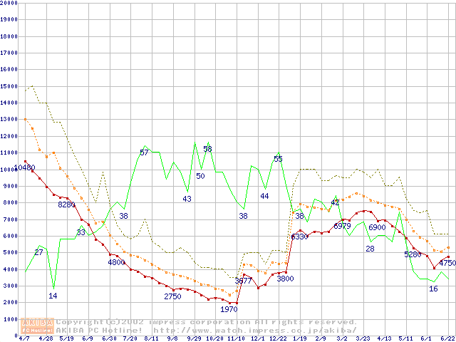 PC133 SDRAM DIMM CasLatency=2の最安値推移