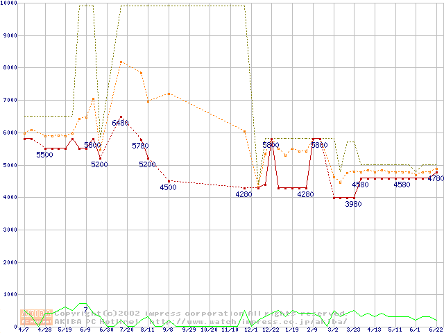 Celeron 500MHz PPGA バルクの価格推移