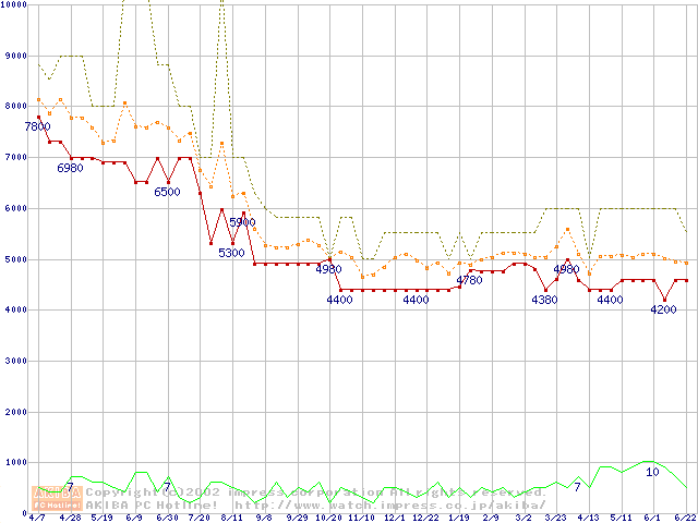 Socket 370・FSB 66MHzの最安値推移