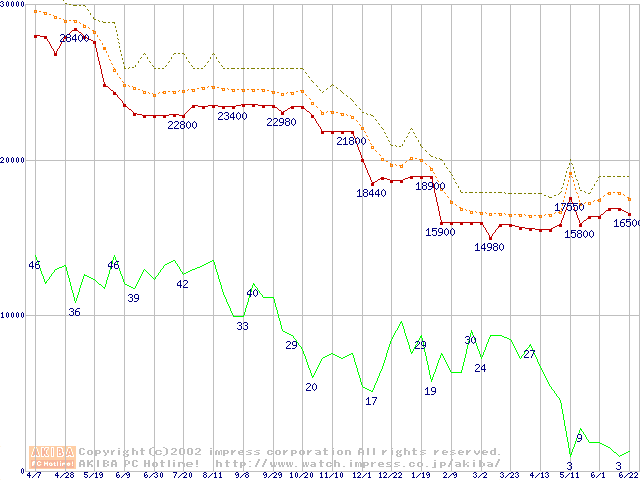 Socket 370 (FC-PGA,FSB 133MHz,L2 256KB)の最安値推移