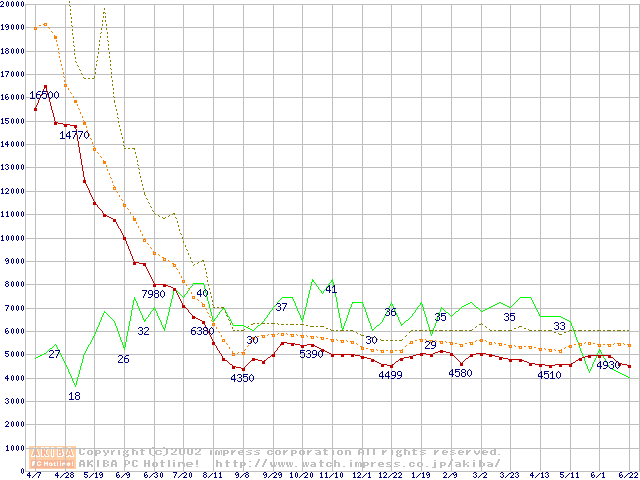 PC800-45 DRDRAM RIMMの最安値推移