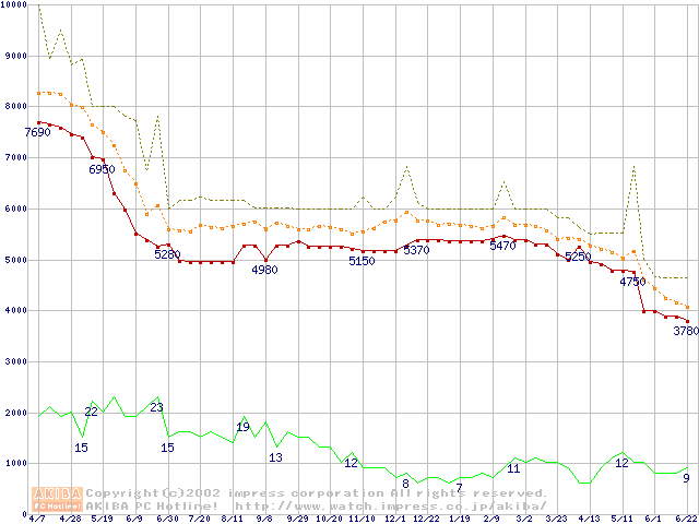 Socket A (Spitfire,PGA,FSB 200MHz,L2 64KB)の最安値推移