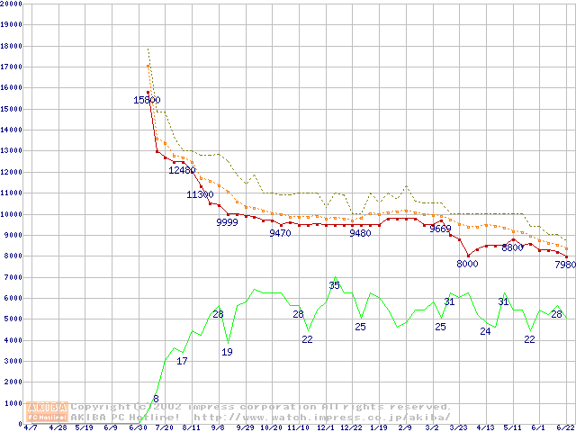 U6 (5400rpm,UltraATA/100 2MB 40GB/Platter)の最安値推移