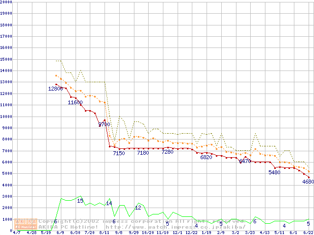 Socket A (Spitfire,PGA,FSB 200MHz,L2 64KB)の最安値推移
