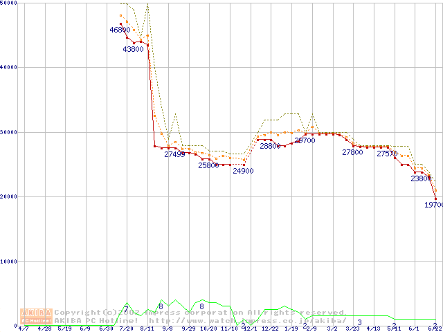 Socket 603 (micro-PGA,L2 256KB,Foster)の最安値推移