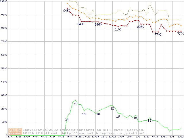 Celeron 950MHz FC-PGA リテールパッケージの価格推移