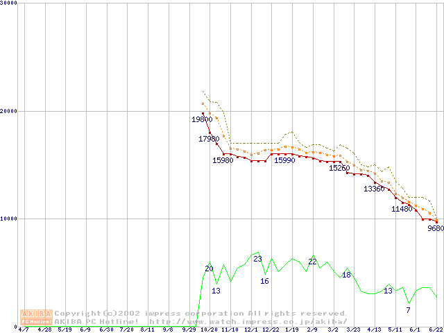 Socket A (OPGA,FSB 266MHz,L2 256KB)の最安値推移
