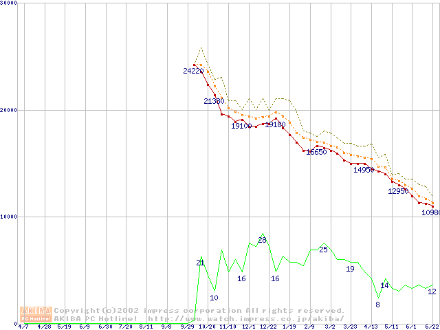 Socket A (OPGA,FSB 266MHz,L2 256KB)の最安値推移