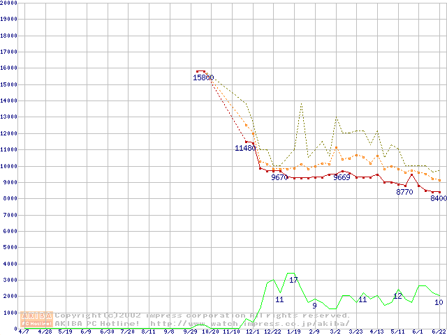 Travelstar 15GN (9.5mm,4200rpm,UltraATA/100,512KB,流体軸受)の最安値推移