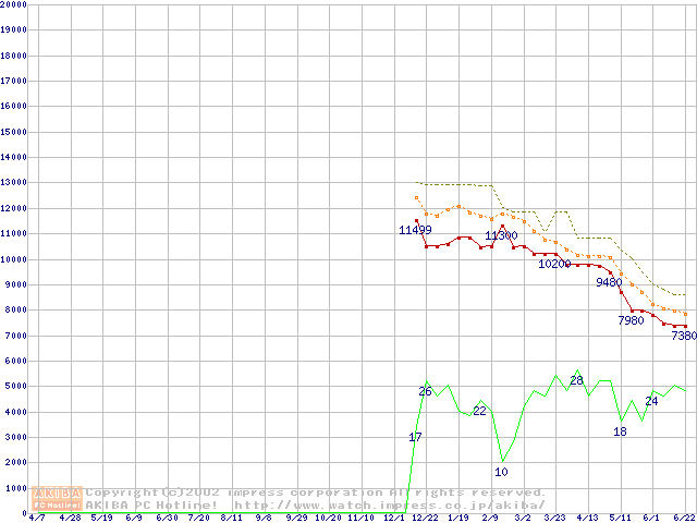 Duron 1.2GHz リテールパッケージの価格推移