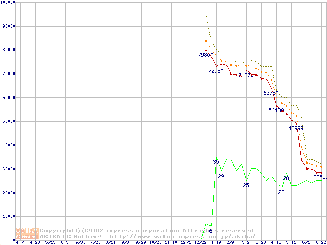 Socket 478 (micro-PGA,FSB 400MHz,L2 512KB,Northwood)の最安値推移