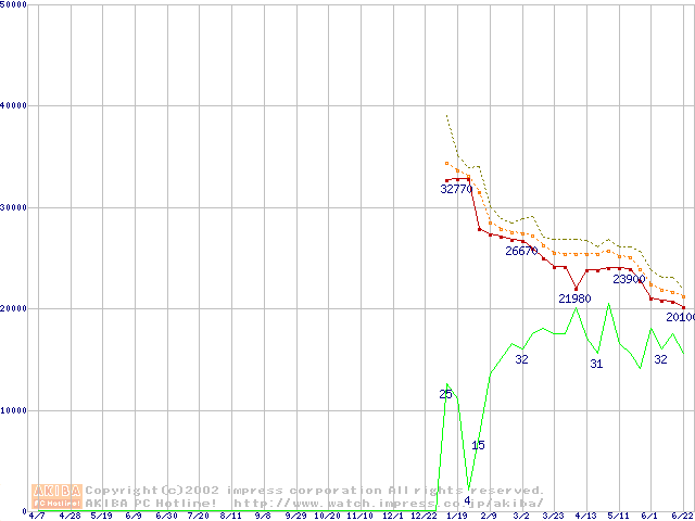 Pentium 4 1.80A GHz リテールパッケージの価格推移