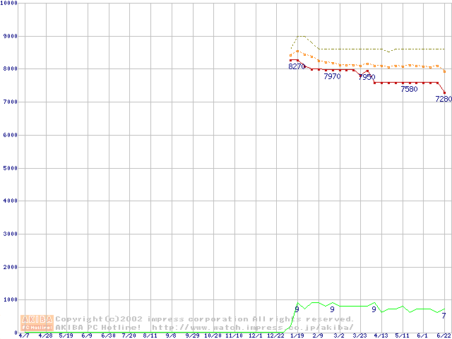 Socket 370 (PGA,FSB 100MHz,L2 64KB)の最安値推移