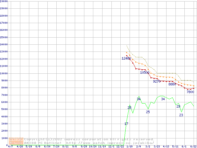 Celeron 1.10A GHz FC-PGA2 リテールパッケージの価格推移