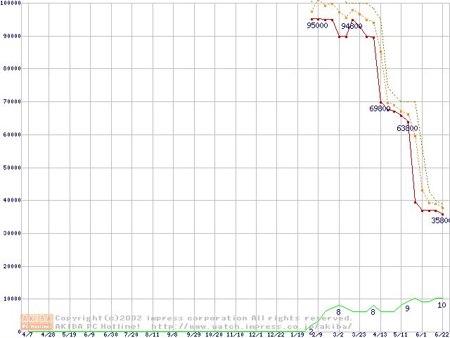 Socket 603 (micro-PGA,L2 512KB,Hyper-Threading,Prestonia)の最安値推移