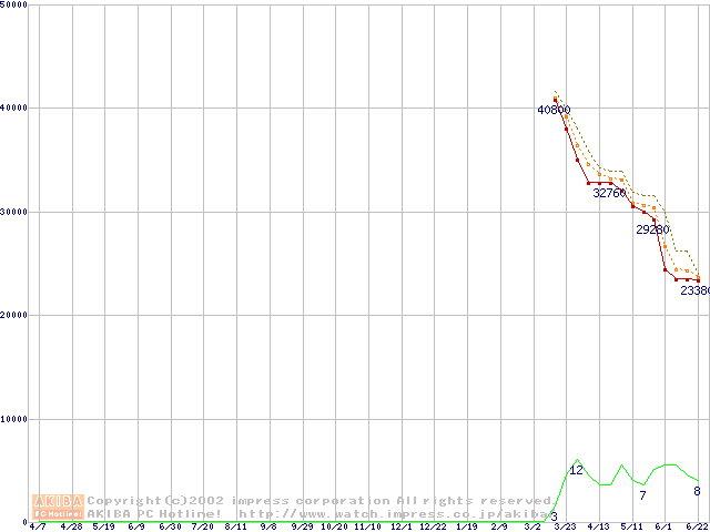 Socket A (OPGA,FSB 266MHz,L2 256KB)の最安値推移