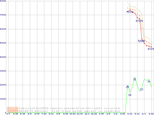 Socket 478 (micro-PGA,FSB 400MHz,L2 512KB,Northwood)の最安値推移