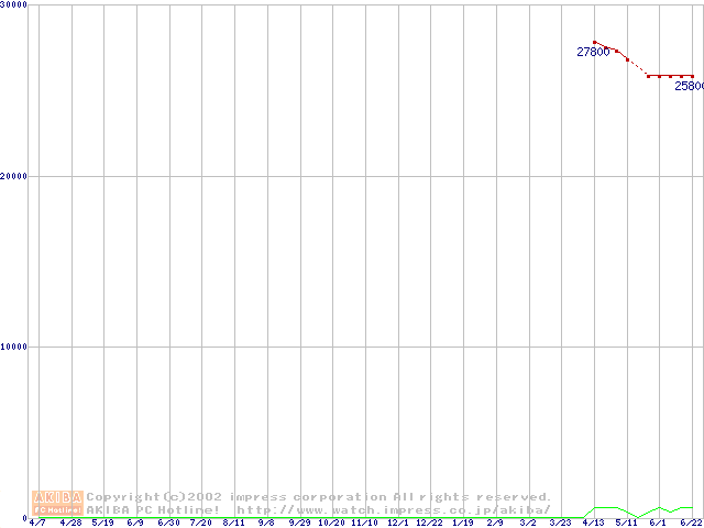 Travelstar 40GN (9.5mm,4200rpm,UltraATA/100,20GB/Platter,2MB,流体軸受)の最安値推移