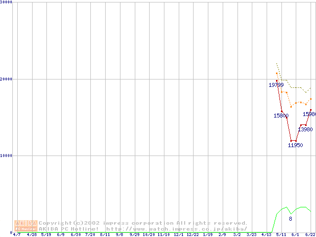 PC3000(DDR366) DDR SDRAM DIMMの最安値推移