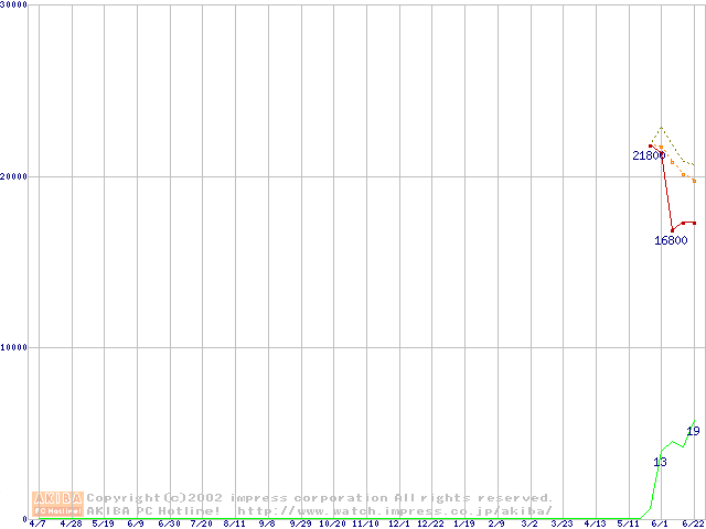 Travelstar 40GNX (9.5mm,5400rpm,UltraATA/100,20GB/Platter,8MB,流体軸受)の最安値推移