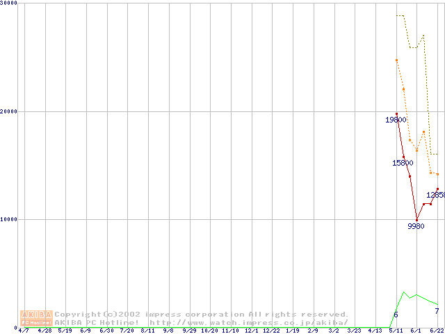 PC3200(DDR400) DDR SDRAM DIMMの最安値推移