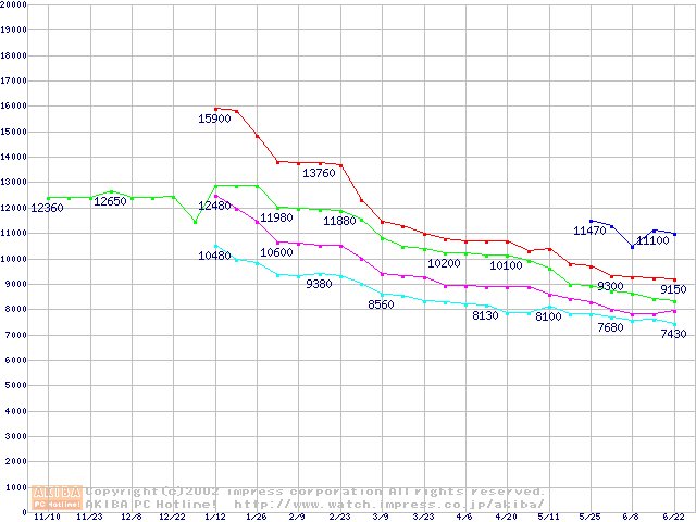 | [↑前グラフ]: | Socket 478 (micro-PGA,FSB 400MHz,L2 128KB,Willamette)の最安値推移 |