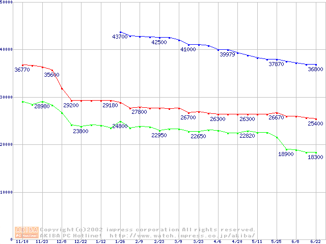 | [↑前グラフ]: | Socket 603 (micro-PGA,L2 256KB,Foster)の最安値推移 |