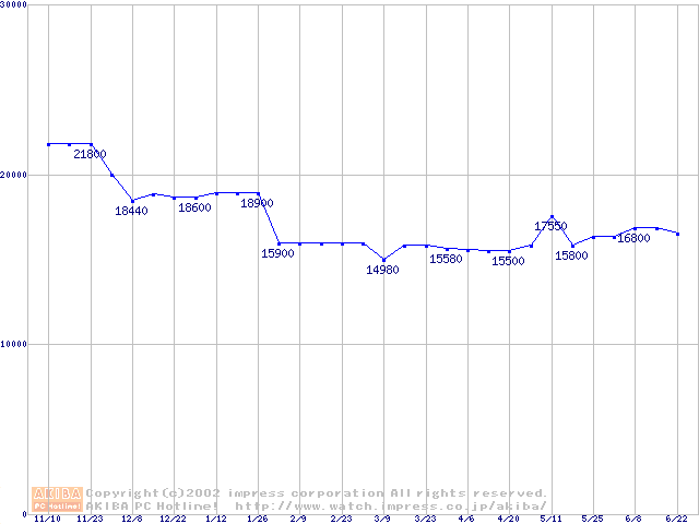 | [↑前グラフ]: | Socket 370 (FC-PGA2,FSB 133MHz,L2 256KB)の最安値推移 |