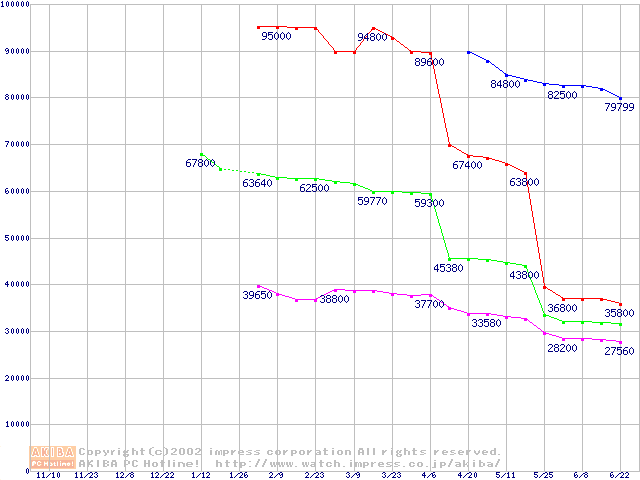 | [↑前グラフ]: | Socket 603 (micro-PGA,L3 512KB,Hyper-Threading)の最安値推移 |