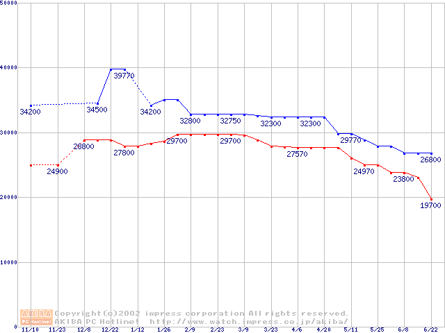 | [↑前グラフ]: | Socket 603 (micro-PGA,L2 512KB,Hyper-Threading,Prestonia)の最安値推移 |