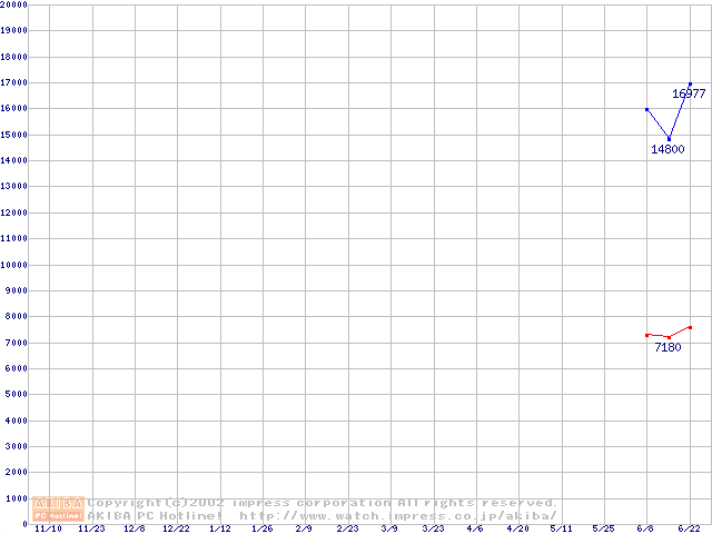 | [↓次グラフ]: | PC2700(DDR333) DDR SDRAM DIMM ECC対応 Registeredタイプの最安値推移 |
