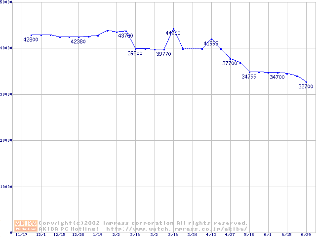| [↑前グラフ]: | 2.5インチHDD 40GB~50GB未満(9.5mm厚)の最安値推移 |