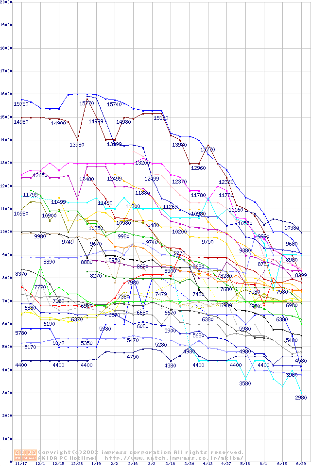 CPU主要製品の最安値推移