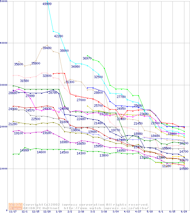 CPU主要製品(最安値2万円~3万円未満)の最安値推移