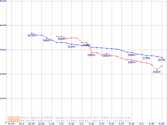 HDD主要製品の最安値推移