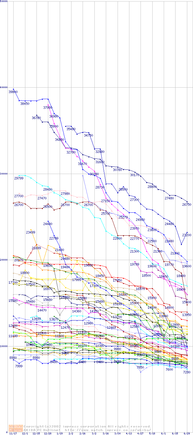 ※製品名をクリックすると個別のグラフを表示します ※点線部は販売店が確認できなかった、または調査データがないことを示します |