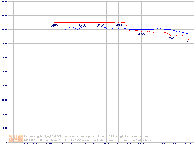 HDD 10GB~20GB未満(5400rpmクラス)の最安値推移
