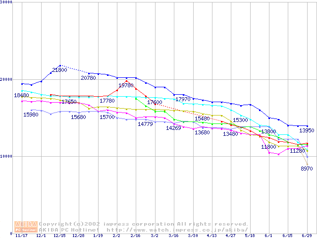 | [↓次グラフ]: | HDD 100GB以上(5400rpmクラス)の最安値推移 |