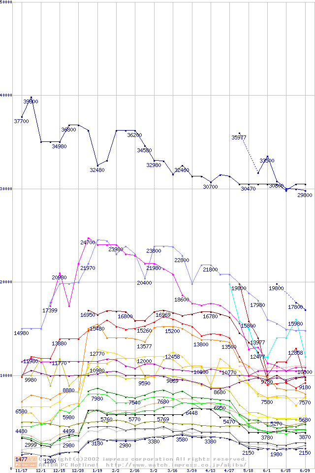 メモリ主要製品の最安値推移