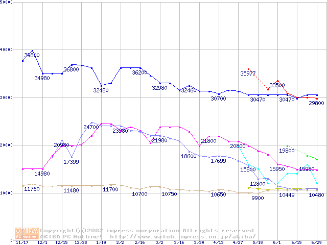メモリ主要製品の最安値推移