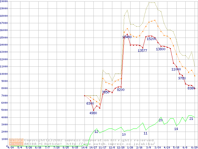 PC133 SDRAM DIMM CasLatency=2の最安値推移