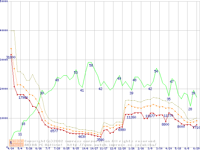 PC133 SDRAM DIMM CasLatency=3の最安値推移