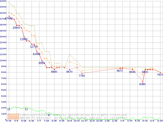 Athlon 950MHz(FSB200) (Thunderbird) バルクの価格推移
